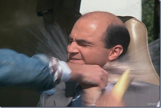 (Terry slams the beige baddie with his choco blocko shake.. also beige coloured.. how appropriate. however, the impact is less beige!)