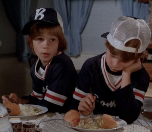 Anyone care to guess what the boys are eating here? I’m thinking hot dogs and iceberg lettuce? Or maybe macaroni cheese? Potato salad? Help me out here, JWWM’ers (Service Above and Beyond).