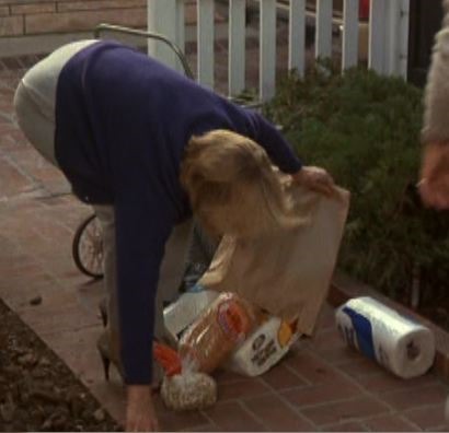 Dotty is sophisticated (evidence: those beautifully kept nails)… so much so that she wears unsuitably high heels to go grocery shopping…and then drops the shopping. And she buys bean sprouts yes.