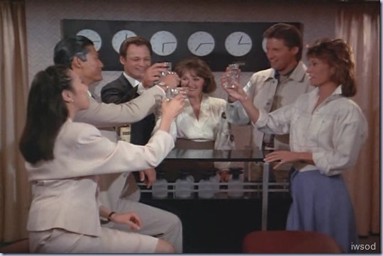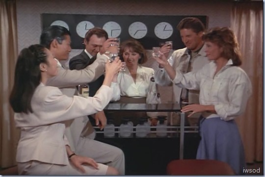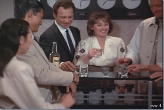 What caught my attention was Colonel Sung’s behavior after the toast. I don’t think she took a sip and, when I watched on the DVD, it appeared she found the smell of the vodka offensive. She may not drink liquor at all OR she just might be pregnant! Just something about the body language of these two.