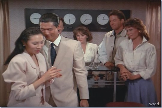 (Chang turns to Col. Sung and says something to her in their language along the lines of ‘shall we head over there’? and they walk off together.. Hmm looking a bit cosy! ) ![]()