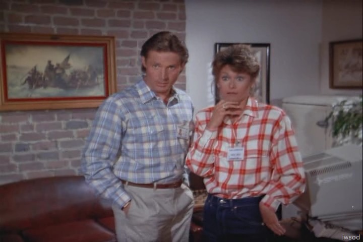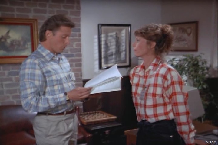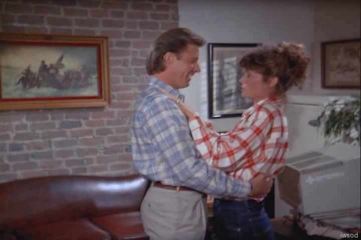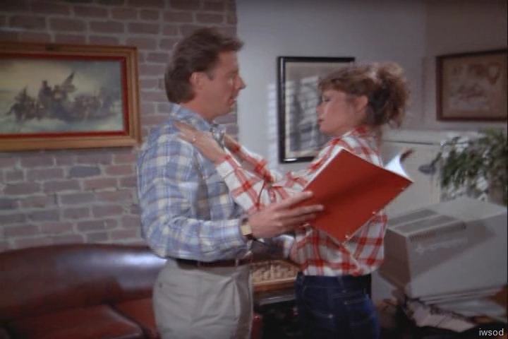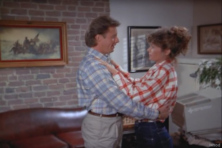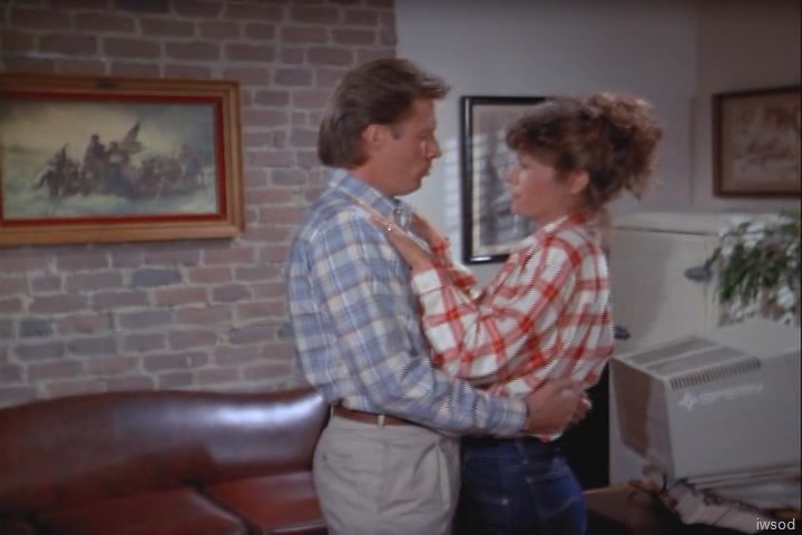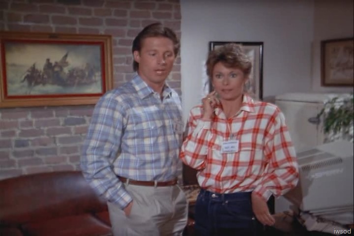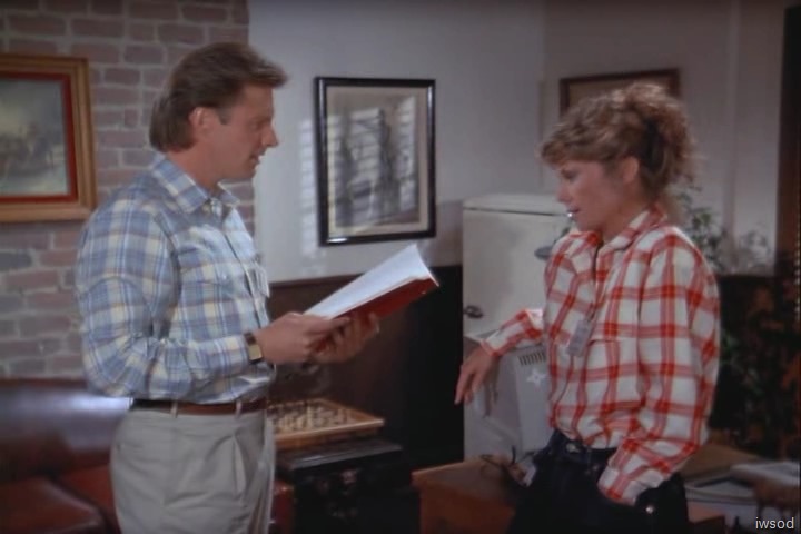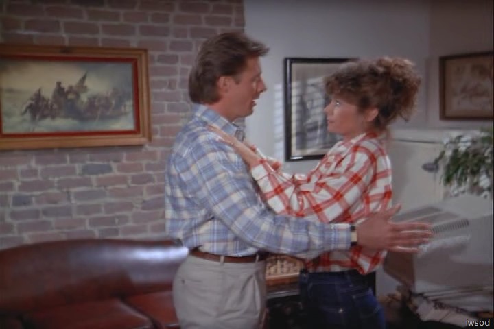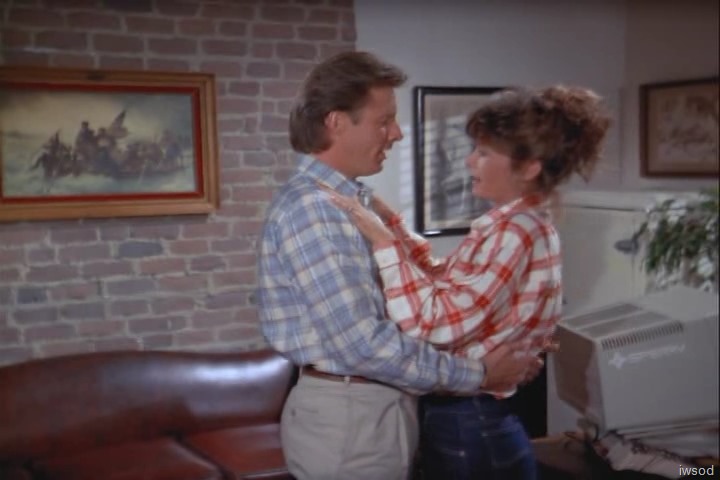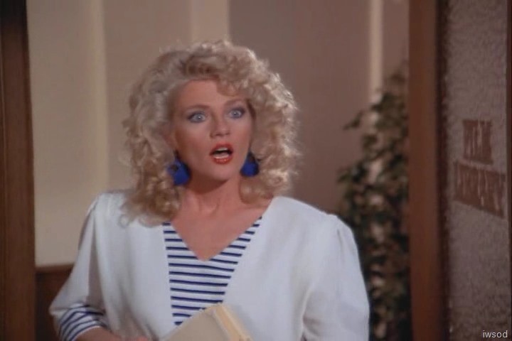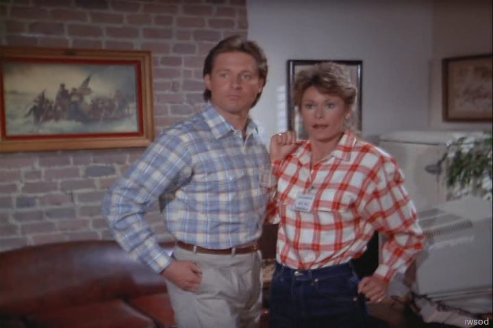 Guess I don’t have to say much about how I feel about those gorgeous, vibrant, comfortable, forever fashionable (at least in my closet!) flannel shirts 🙂 And I actually do like Francine’s outfit although it is OTT. I think she looks very pretty in it, even if it is heavily-accessorized, early 80’s style. But the best adornment is her wicked cat-that-ate-the-canary grin as she exits. The scene had to be quite the shock to her, but she was quick on her feet with a great comeback, and had to be thinking about the many delightful ways she could take advantage of this little moment as she smiled her way out.