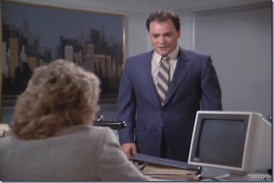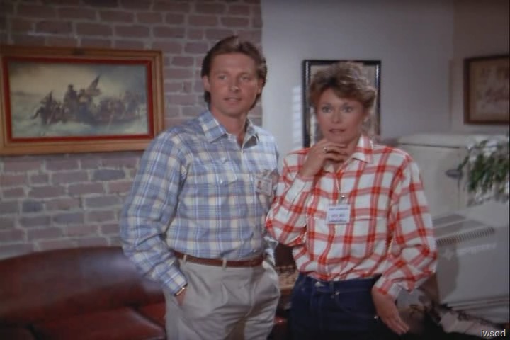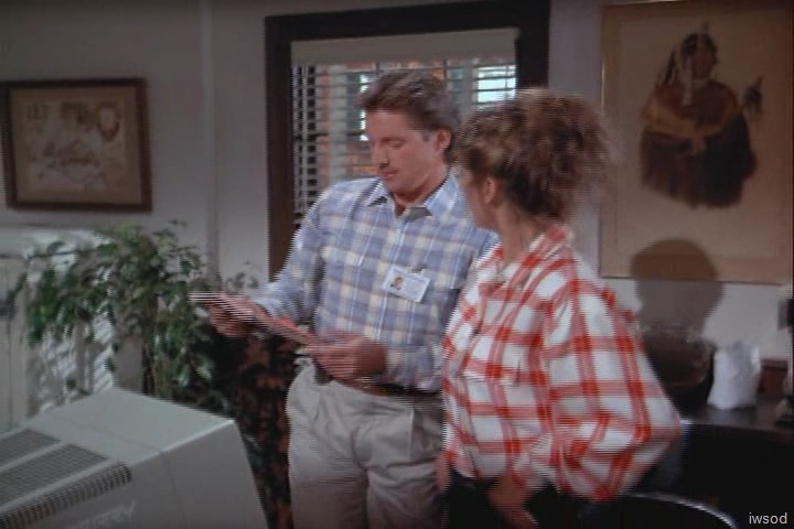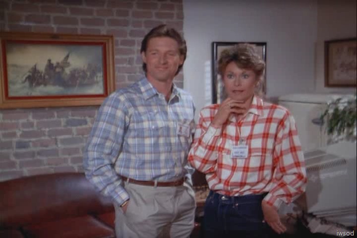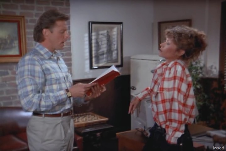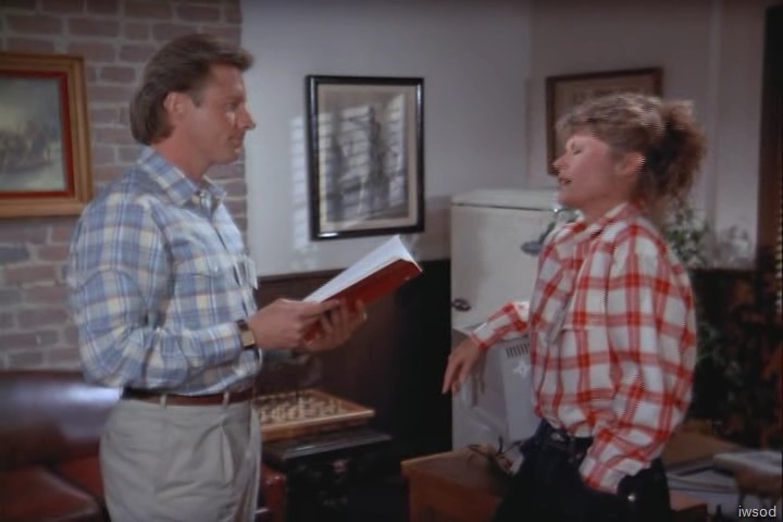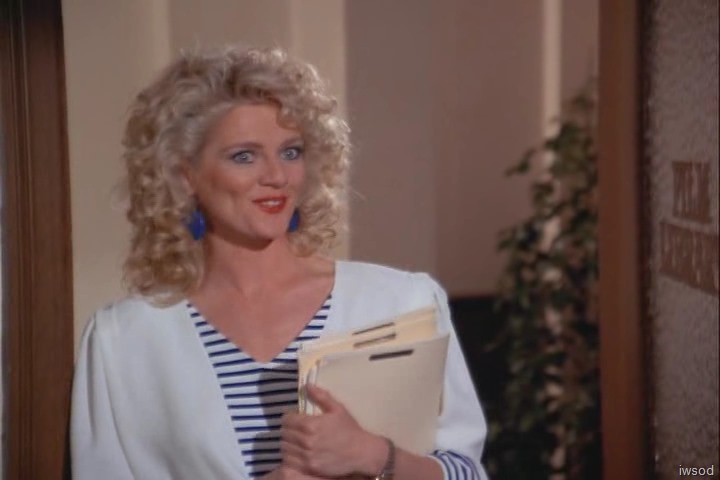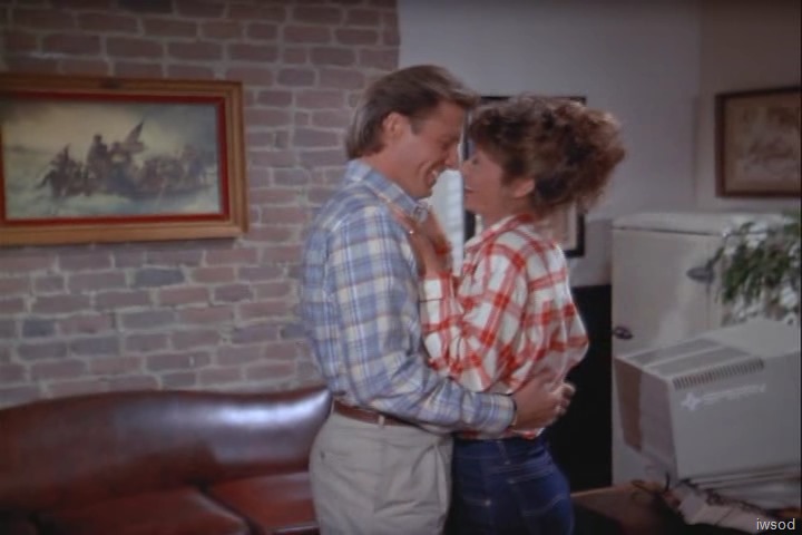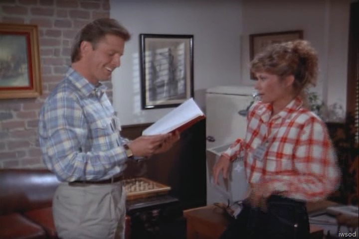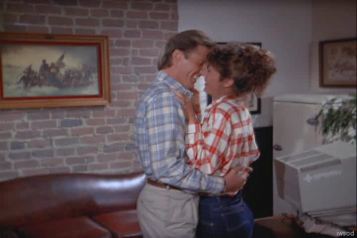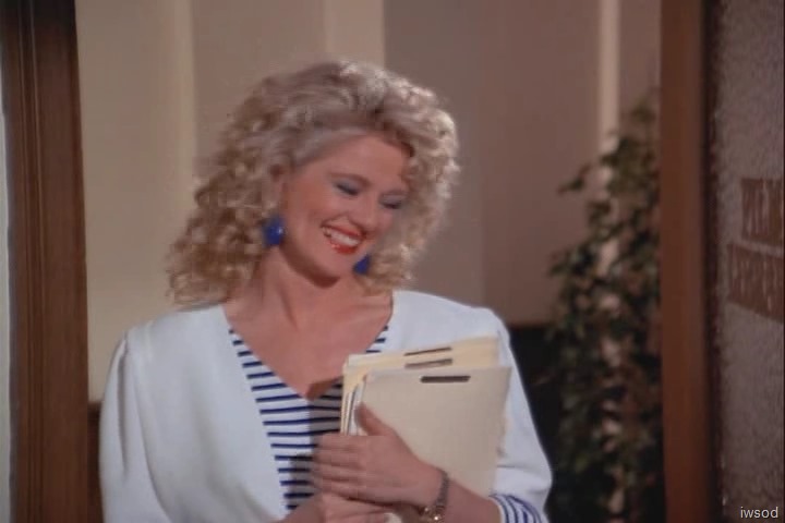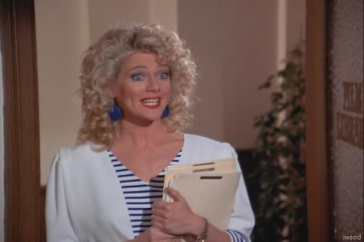 Guess I don’t have to say much about how I feel about those gorgeous, vibrant, comfortable, forever fashionable (at least in my closet!) flannel shirts 🙂 And I actually do like Francine’s outfit although it is OTT. I think she looks very pretty in it, even if it is heavily-accessorized, early 80’s style. But the best adornment is her wicked cat-that-ate-the-canary grin as she exits. The scene had to be quite the shock to her, but she was quick on her feet with a great comeback, and had to be thinking about the many delightful ways she could take advantage of this little moment as she smiled her way out.
