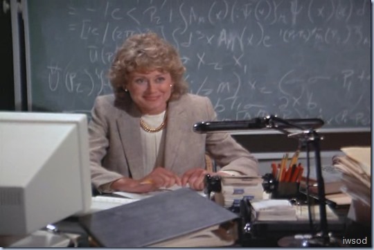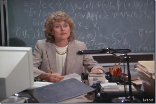 7. I’ve never really given Maria Von Clausen much thought in this episode – at least not up until this point, but after reading this post, I’ve decided that I like the idea that she is a highly intelligent woman who is vital to the country’s star wars defense, and therefore, the government must protect her at all times. I think she has to be available and/or work around the clock and only gets one weekend a month off for personal time. She is that valuable to the country. With this in mind, I’m thinking that she’s a literal genius compared to Walter and is toying with him like an adult can toy with a small child. It’s literal child’s play. Given her job, her intelligence, and her status, I’d like to think she doesn’t give a rip who knows what she does with her weekends. Maria has needs and isn’t afraid of others knowing. I kind of think this is more male behavior, but I’m guessing she’s probably the lone female at such a high level of the strategic defense initiative. I think she’s given up private life and marriage, kids, etc. to use her big genius brain in service to her country. So with all those thoughts, I don’t find this scene bothersome at all and makes me quite like her. I may not like her choice in men, but having a genius brain doesn’t account for taste! hahaha