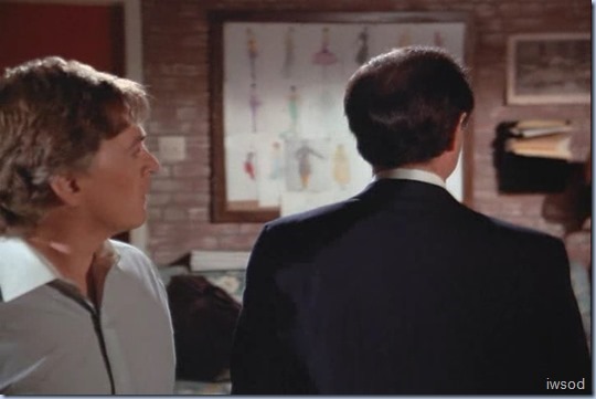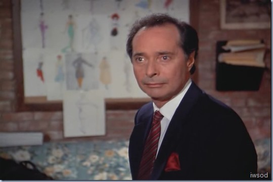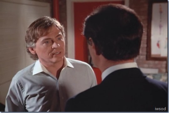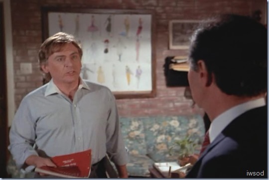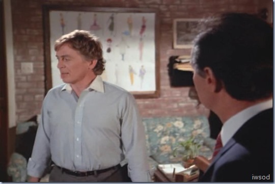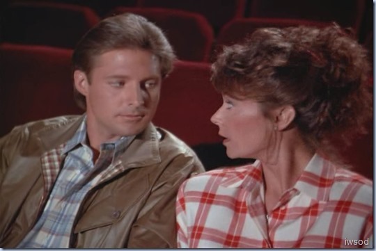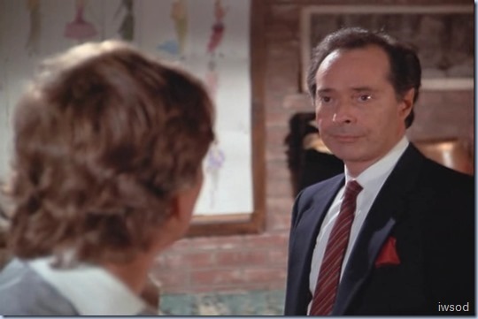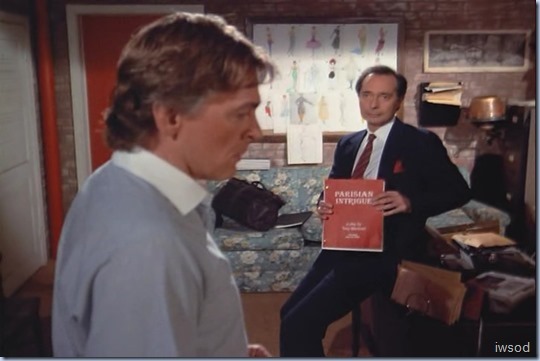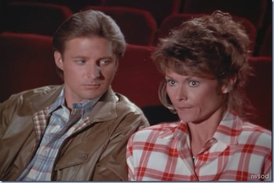 I love Amanda’s hair in this scene, but I don’t like Tony’s arched eyebrows. I don’t remember them on his character, Niles, in The Nanny. I think they make him look a little bit evil.