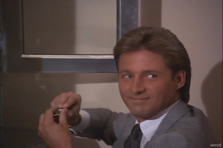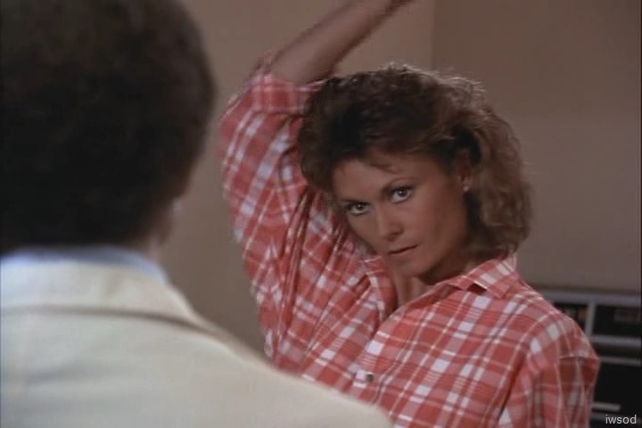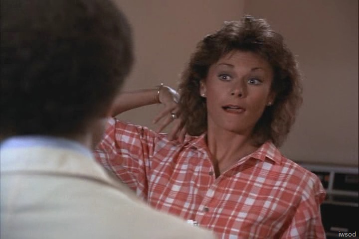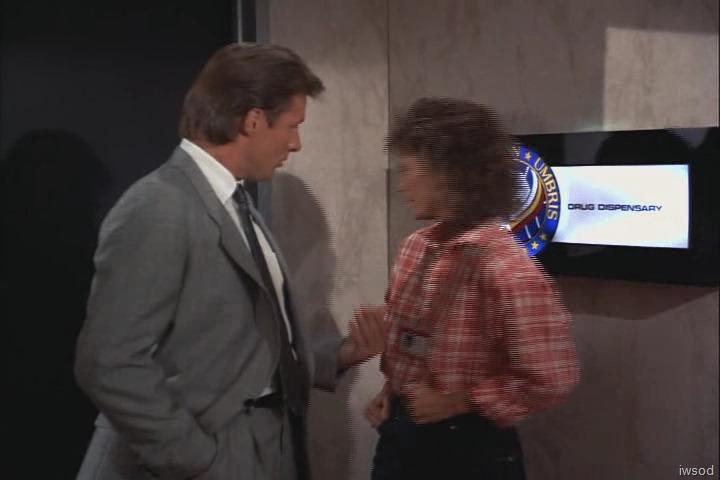 Good point. I just assumed that Kate’s odd arm & hand contortions, while distracting the D3 (Drug Dispensary Doctor), were actually for Bruce who was deliberately ignoring her subtle directorial cues. Another idea: she was trying to get that D3 to break down and laugh; after all, he was quite serious and, from watching old interviews, they had a lot of fun making S&MK.