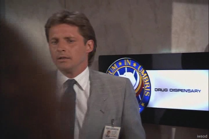 Hey, Amanda’s wearing her badge again! The colored stripe must mean something. The doctor has either a green or blue stripe at the top of his badge.