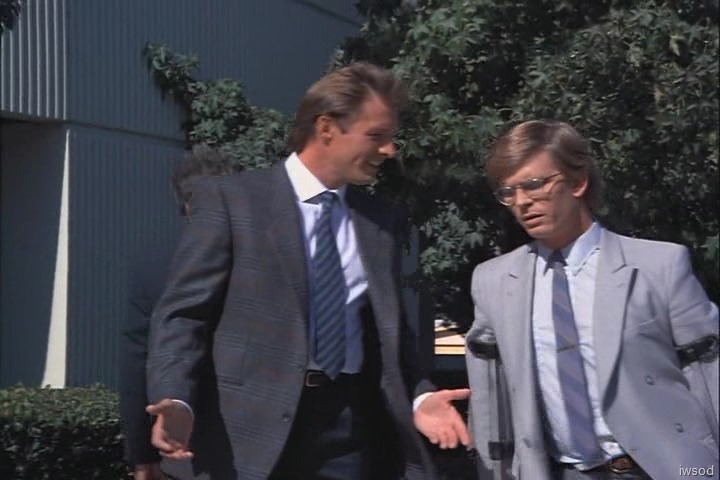 I looked up the actor playing Pat and it turns out he had suffered from polio as a child and it had left him a araplegic. Which explains the unusual look of his crutches — I’ve seen wrist crutches and armpit crutches, but this is the first time I’ve ever seen one that looks like a combination of them both.