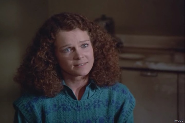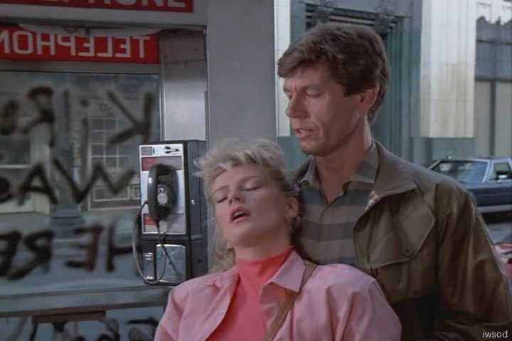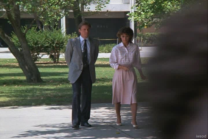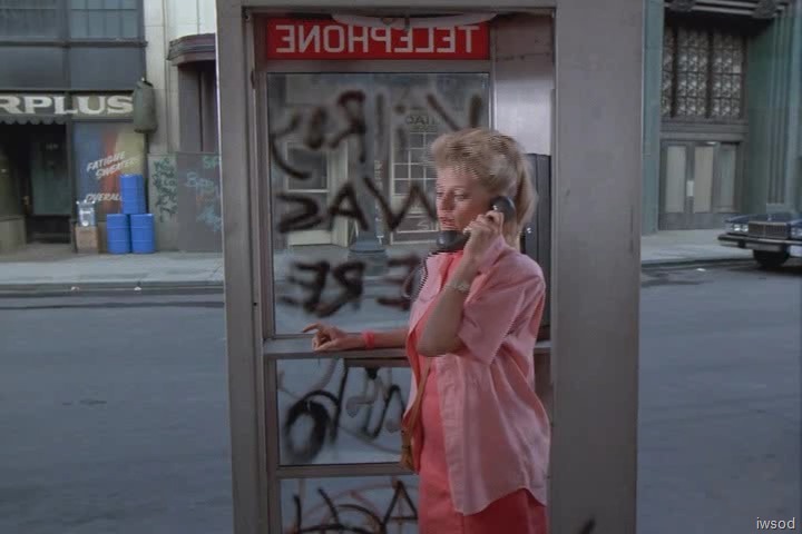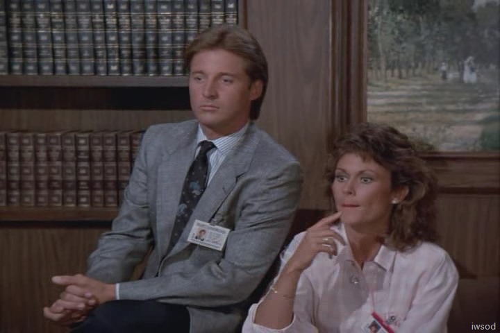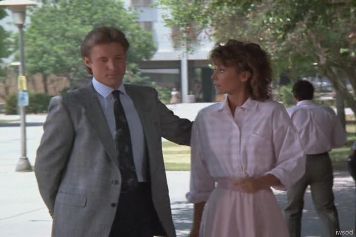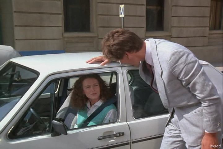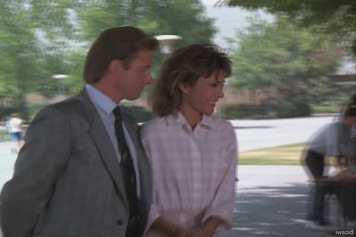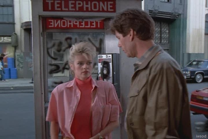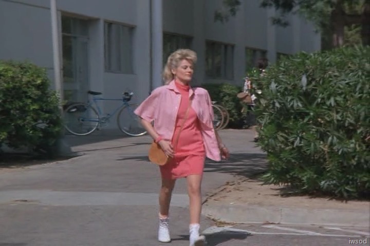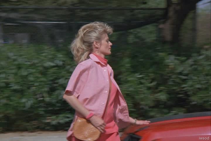 Francine’s outfit offers some light relief. I love the sweat band on the wrist, the (what we called) “aerobics shoes” (where I come from) and the ubiquitous banana clip 😀 😀 😀 Note she is not doing any exercise other than running to her car. (And Iwsod, I actually still have a Banana clip, sitting in my cupboard. I just keep it because the sight of it makes me feel nostalgic)