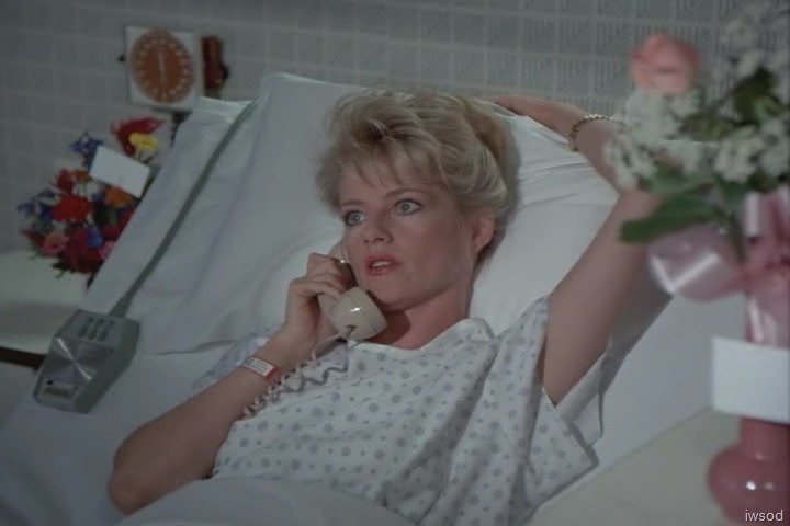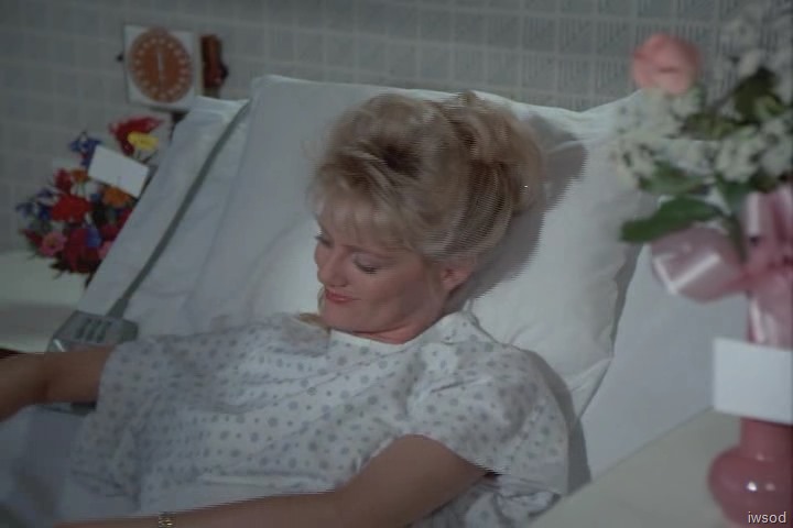 2. I have to say that Francine looks wonderful lying in her hospital bed…. the soft makeup, the pink roses, the hairstyle…all really suit her much more than red lipstick, bright yellow outfits etc. I actually think Francine would look better in the pastels that Amanda wears, while Amanda actually looks better in stronger colours (but definitely not yellow)