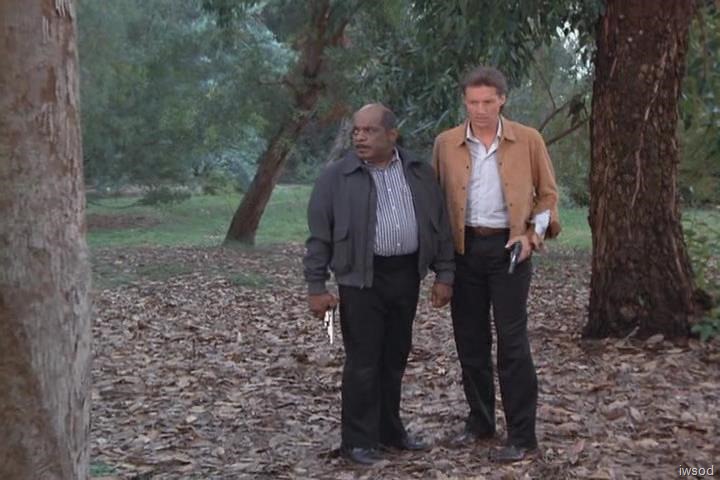 I’m amazed Lee wasn’t hurt at all by that dog attacking him. Seems like he should have been pretty sore. I love that shirt we see him in after the dog ruined his jacket though. I remember going crazy for seeing Robert Wagner wearing a similar shirt on a Hart To Hart movie (High Season? I can’t remember for sure) but Bruce looks even better in it!