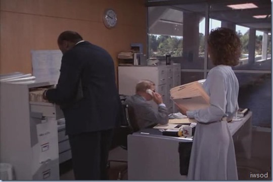 Things that don’t irritate me include, and I guess I’m in the minority here, Beaman’s attitude. He has just complimented her on being top in the class on surveillance and he doesn’t seem surprised that she’s already done the file he gave her. I keep looking for the irritattion everyone else sees here and all I can see is a kind of humourous resignation that he needs to tell her to find one she hasn’t done. personally I’m just left with the feeling that this has happened more than once before…