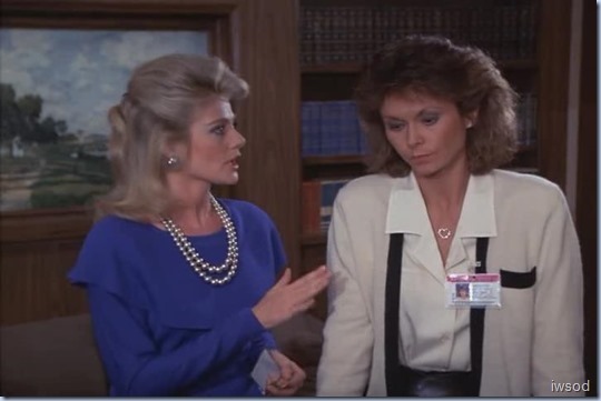 That heart necklace was likely a gift from Dotty and/or the boys. A Mother’s Day gift or something. It couldn’t have come from Dean, because he was long gone by then. Lee? Well, that would be sweet, but we can’t confirm. It’s likely a gift, but they’re not even discussing it here. Even if the necklace went missing for several years and turned up all of a sudden, that still brings us back to the question of why Amanda would wear that pink outfit, diamond necklace and 80s hairstyle to a radical 60s demonstration.