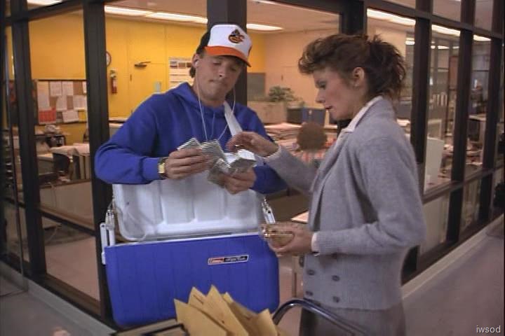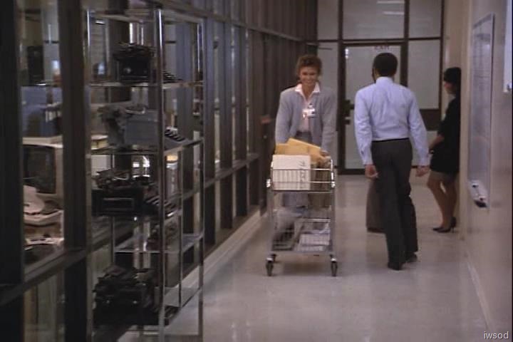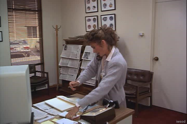 [oh rofl. check out the random typewriters in that shelving unit!! I mean sure it’s a newspaper but surely they were using computers in the 80’s?! I can even see one through the glass there. I guess all the old salts like Charlie would stubbornly refuse to stop using them..]