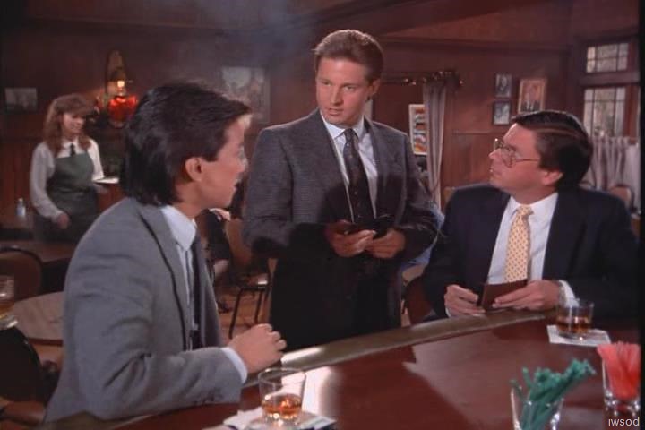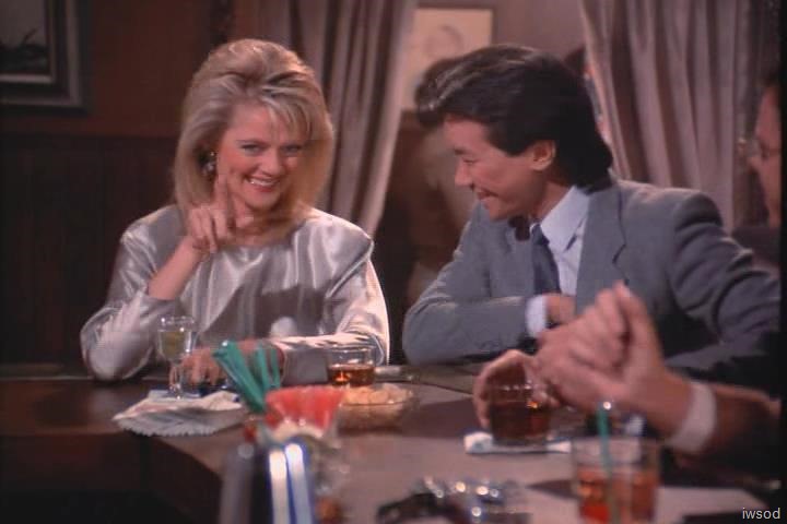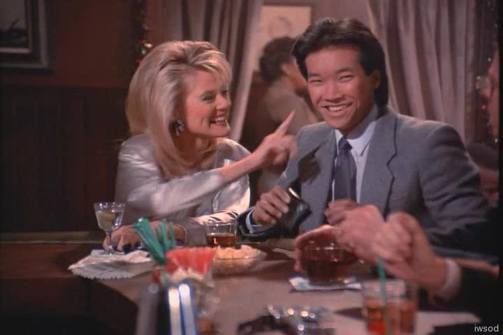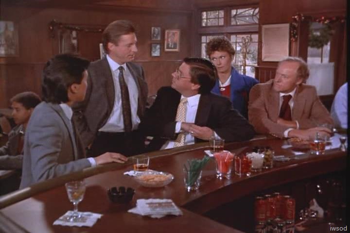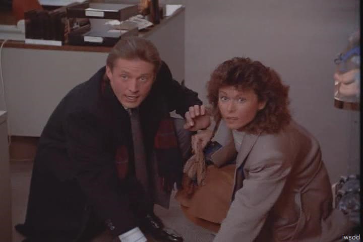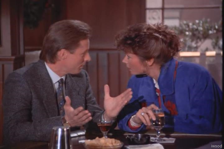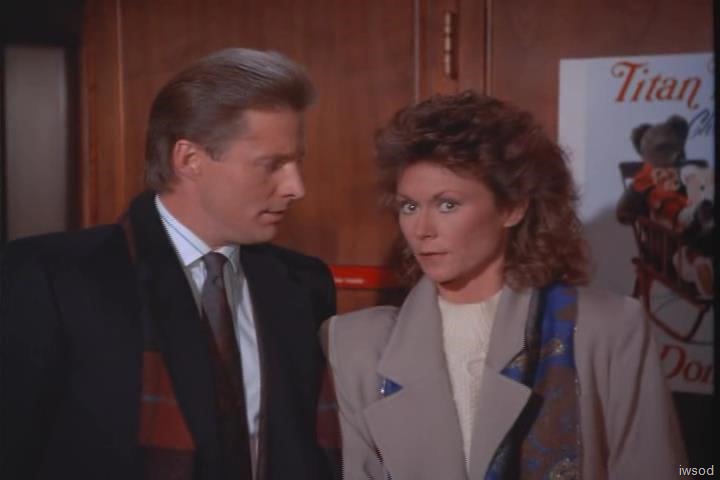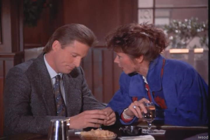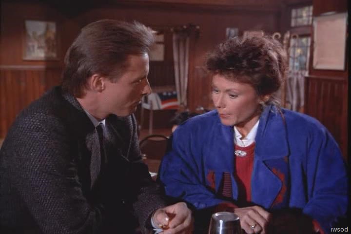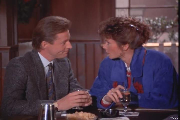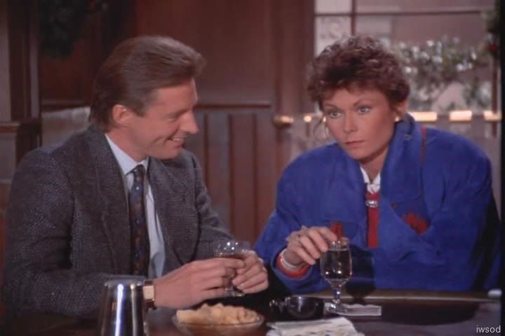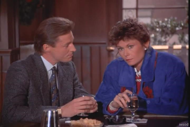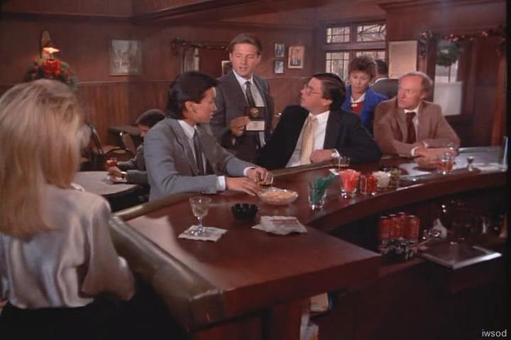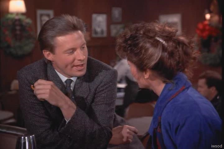 At this point in the episode, it is still lunchtime, or early afternoon at the latest – we know this because we get the time much later on, when the guy checks his watch and it is only 5pm (“it will be midnight in Dresden in an hour”). Considering that it is still early in the day, I see nothing wrong with Lee being cheerful and commenting that “this is turning out to be a great Christmas Eve.” As far as Lee knows, there is no reason to expect they won’t be home by evening (I’m sure he’s not expecting to get caught at the toy factory and locked in a room). They are together, Francine is being amusing, and Christmas music is playing! There is nothing wrong with finding enjoyment in that. He says this to Amanda with a smile, and is rewarded by Amanda being a pill to him, sniping about how “it is Christmas Eve and we are at a bar,” as if that is the worst thing in the world. It’s part of a “lecturing-him” thing that she adopts during Season 4 that really rubs me the wrong way.
