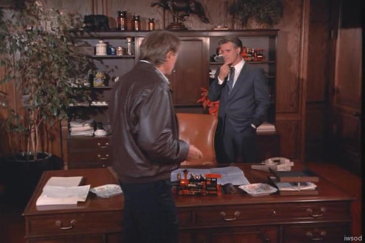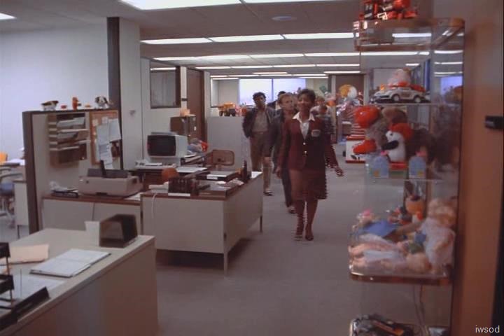 [I do wonder if this is a department at warner bros and they’ve just stuck that one glass cupboard there randomly. It’s kind of funny how no one is at the desks!]