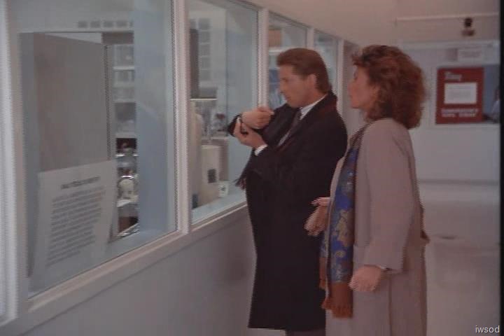Lee: (to Amanda) Oh no, no, no, don’t touch it. The only way we’re going to find it is with a damp cloth. (He looks up at guard) Excuse me? ![]()