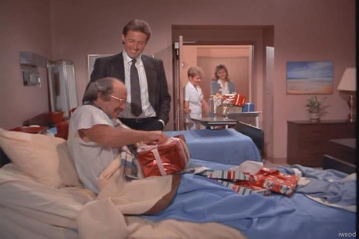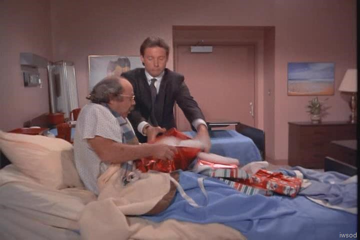I’m wondering what Bernie’s injuries were that kept him in the hospital for days. This was back in the day when patients were hospitalized until they were well. Really well. Christmas gifts being passes out? Really? Oh, remember when airlines served meals? It sure looks like there’s more than scarves in those boxes, too.