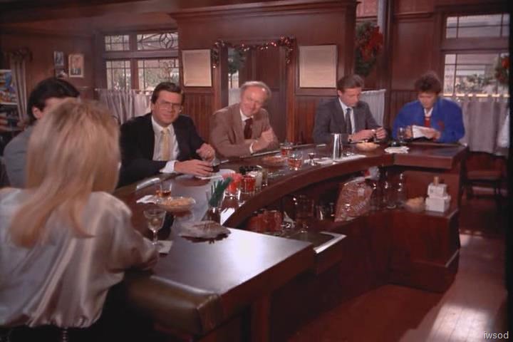 Cut to Francine and Engineers toasting at the other end of the bar.}
