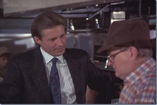I have no idea if this is intentional or not, but this scene at the super exclusive country club reeks of white male privilege. I’m guessing it wasn’t intentional at all, but I just take note here that- Firstly, Billy’s never been invited.. but Lee his junior white male colleague does get an invite.. Secondly- there are tons of old white guys pictures on the walls surrounding them as they talk, and thirdly, the waiter serving was African American. Then, to top it all off we have gendered language around a female professional in a position of authority – Hmmm…  Just an observation.. combined with today’s lens, it’s unfortunate.