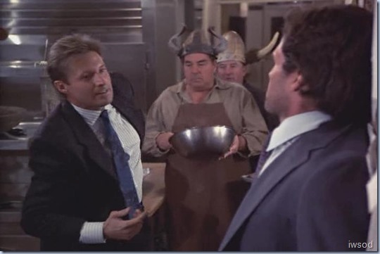 ….and Lee and him fight… throw in some pies, men with horn hats, a gun, a fork and a bulletin board…
