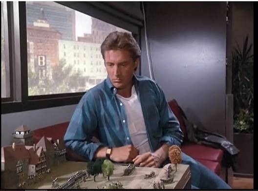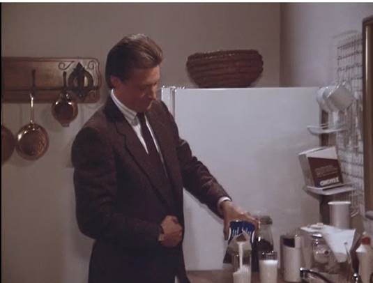 Opposite the bed seems to be a television. The room is really bare compared to his room in other seasons and I can’t find a closet! (We do see a hint of a door behind Amanda on The Eyes Have It next to the plant that may be a closet?) I’d love to know what he did with all the awesome old furniture he used to have, because we see it in his new apartment the following season.