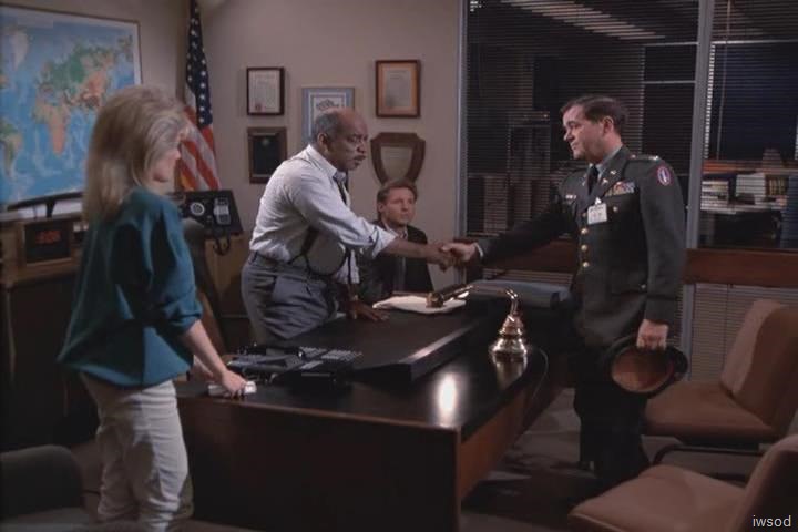 Billy is meeting with a member of the military. Lee and Francine are there too.4.15 Bad Timing.avi_000641341 Man (Colonel McJohn): Until a year ago, a doomsday bug like PD-2 was just a bad rumor. Then, an escapee from Russia wiped out an entire Finnish village in less than a week. It turns out he was a human lab rat for the Scarlet Rose—The KGB’s ultra-secret chemical warfare group….
