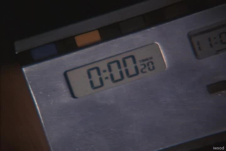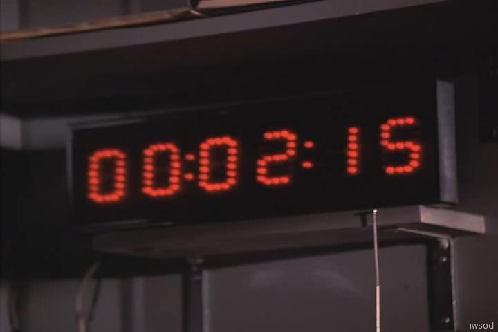 {Lee and Billy leave. Another view of the clock at 00:05:17 and counting down with Doneck still speaking off camera.}