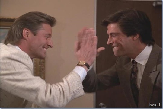 (They laugh and slap five.)