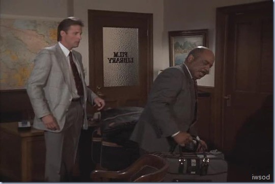 Lee says this as he wrestles to keep her in his grip. [Umm when have I ever heard Lee Stetson say that to a man who doesn’t want to be captured. Seriously?? Why should the baddie make it easy for Lee?! Felicia you wanna be bad, you be bad! and forget those manners. whahahahaaaaa.. what a sexist line. I put this down to the 80’s..and..I move on..]