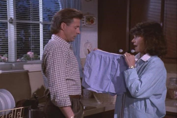 (The camera freezes on them looking at each other, Amanda holding up the boxer shorts between them.)
